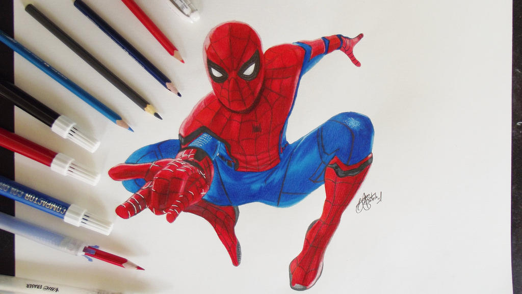 Drawing Of Spiderman From Spiderman Homecoming I Drew Him With Farber Castell Polychromo Spiderman Homecoming Drawing Spiderman Drawing Spiderman Comic Art